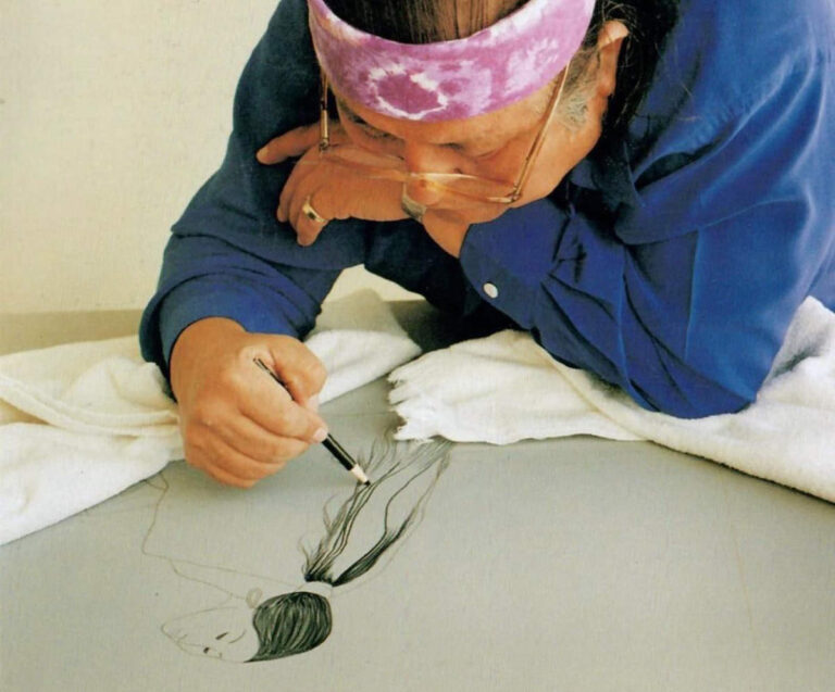 R.C. Gorman’s original woodblock prints, seen below,  are hand signed and numbered.  The woodcut printmaking process derives from Egyptian and Chinese traditions. Using this process, the artist, sometimes with the help of a skilled craftsman, cuts into a block of wood to create the image in relief.  R.C. Gorman finished several woodblock prints while traveling in Japan and studying under printmaking masters in Tokyo.
